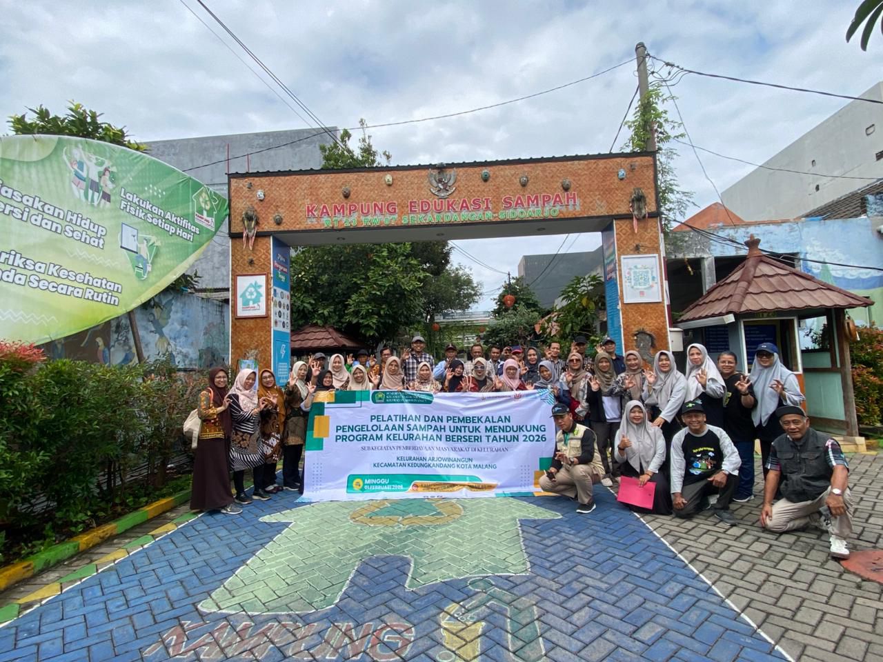 Sidoarjo – Dalam rangka pelaksanaan Kegiatan Pemberdayaan Masyarakat, Kelurahan Arjowinangun, Kecamatan Kedungkandang, Kota Malang, melaksanakan Kegiatan Penguatan Kelembagaan dengan tema “Pelatihan dan Pembekalan Pengelolaan Sampah untuk Mendukung Program Kelurahan Berseri Tahun 2026” melalui kunjungan pembelajaran ke Kampung Edukasi Sampah (KES) RT 23 RW 07, Kelurahan Sekardangan, Kabupaten Sidoarjo, pada Minggu, 1 Februari 2026.